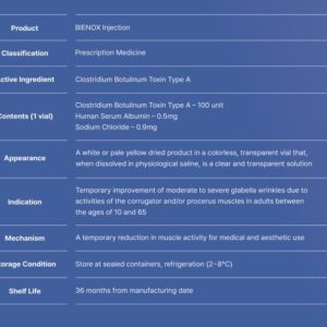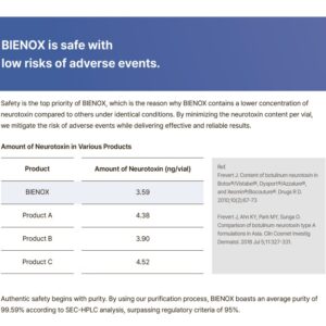 Developed by BNC Korea, this revolutionary Botox formula for complexion smoothing and refining marks a new era in cosmetic enhancement. Bienox, a pure form of botulinum toxin type A, is your best bet for non-invasively addressing the visible signs of aging. It makes the face appear younger, eases strained facial muscles, and diminishes fine wrinkles.