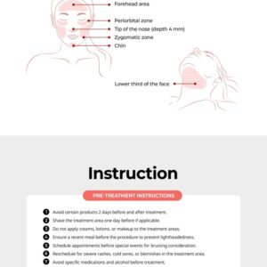 Treatment Areas include forehead, periorbital zone, zygomatic zone, nose tip, lower third of the face.