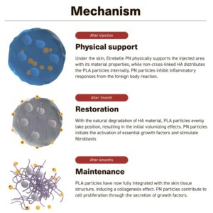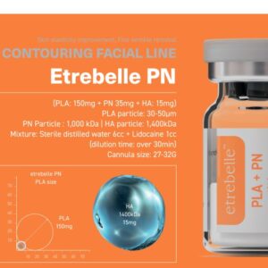 Etrebelle PN combines the powerful effects of PLLA (Poly-L-Lactic acid) and PN (Polynucleotide) to ensure proper collagen synthesis and tissue regeneration. It contains HA, which helps improve skin moisture and elasticity by utilizing collagen. The PN in this filler helps inhibit inflammatory cytokines that may cause skin degradation.